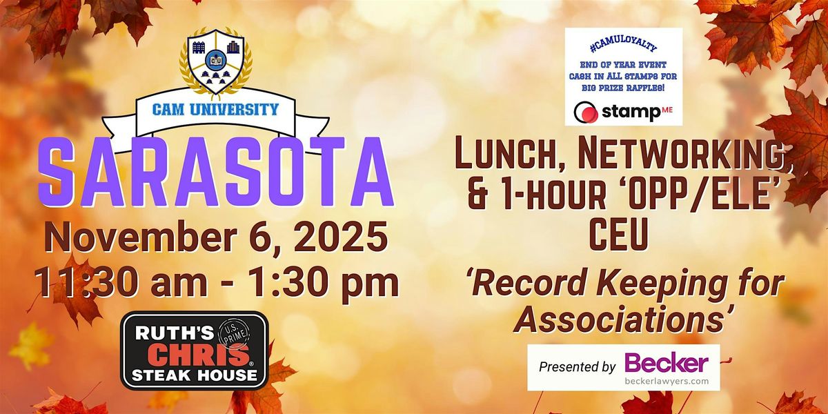 CAM U Sarasota Complimentary Lunch, Networking and 1-hr CEU at Ruth's Chris