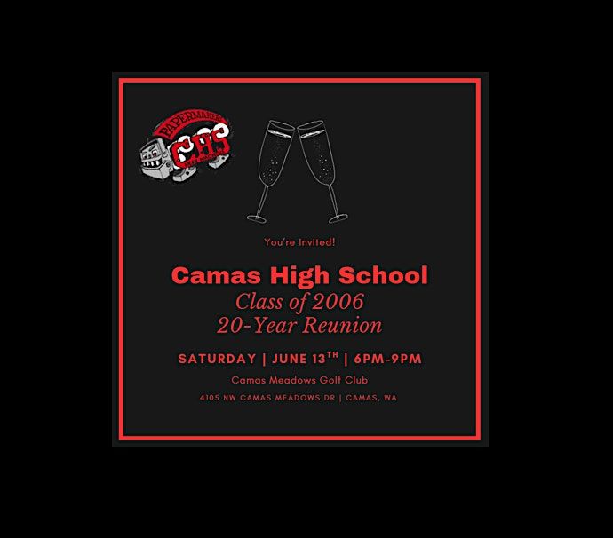 Hey Papermakers! Itโs time to celebrate 20 years since graduation. Join us at Camas Meadows Golf Club on June 13, 2026 at 6:00 PM (Pacific Time) for an evening full of fun, laughs, and catching up with old friends. We can't wait to see you there!