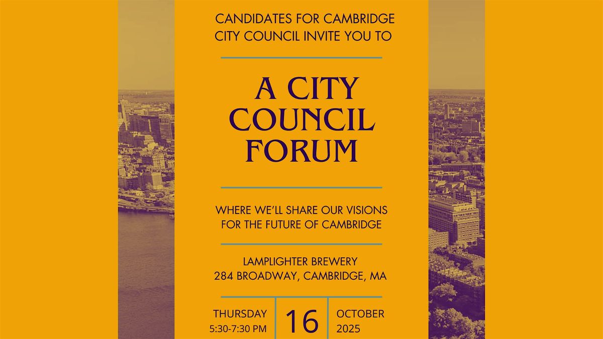 We love being part of the Cambridge community, and this event will allow fellow community members to engage directly with candidates on issues that matter to them!