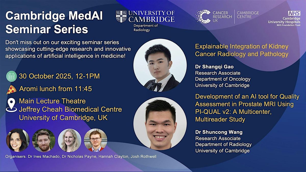 For more information about this seminar series, see: https://www.integratedcancermedicine.org/research/cambridge-medai-seminar-series/