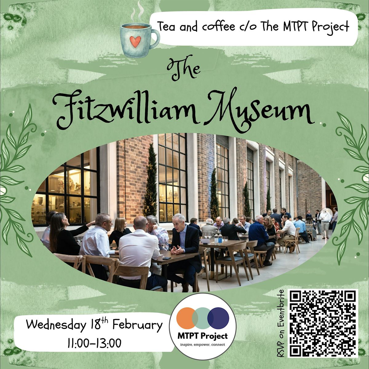 Join The MTPT Project for a relaxed morning of coffee, cake and lunchtime networking the Fitzwilliam Museum Cafe in Cambridge, hosted by Cambridgeshire Regional Representative, Jo Bryce.