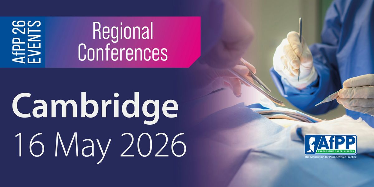 The AfPP Regional Conference in Cambridge on Saturday 16 May 2026 brings high-quality, accessible education directly to perioperative teams, offering evidence-based sessions aligned with national standards, specialist exhibitors, and opportunities to build connections with peers. Delegates can earn 5 CPD hours. The theme of the day is 'workforce'.