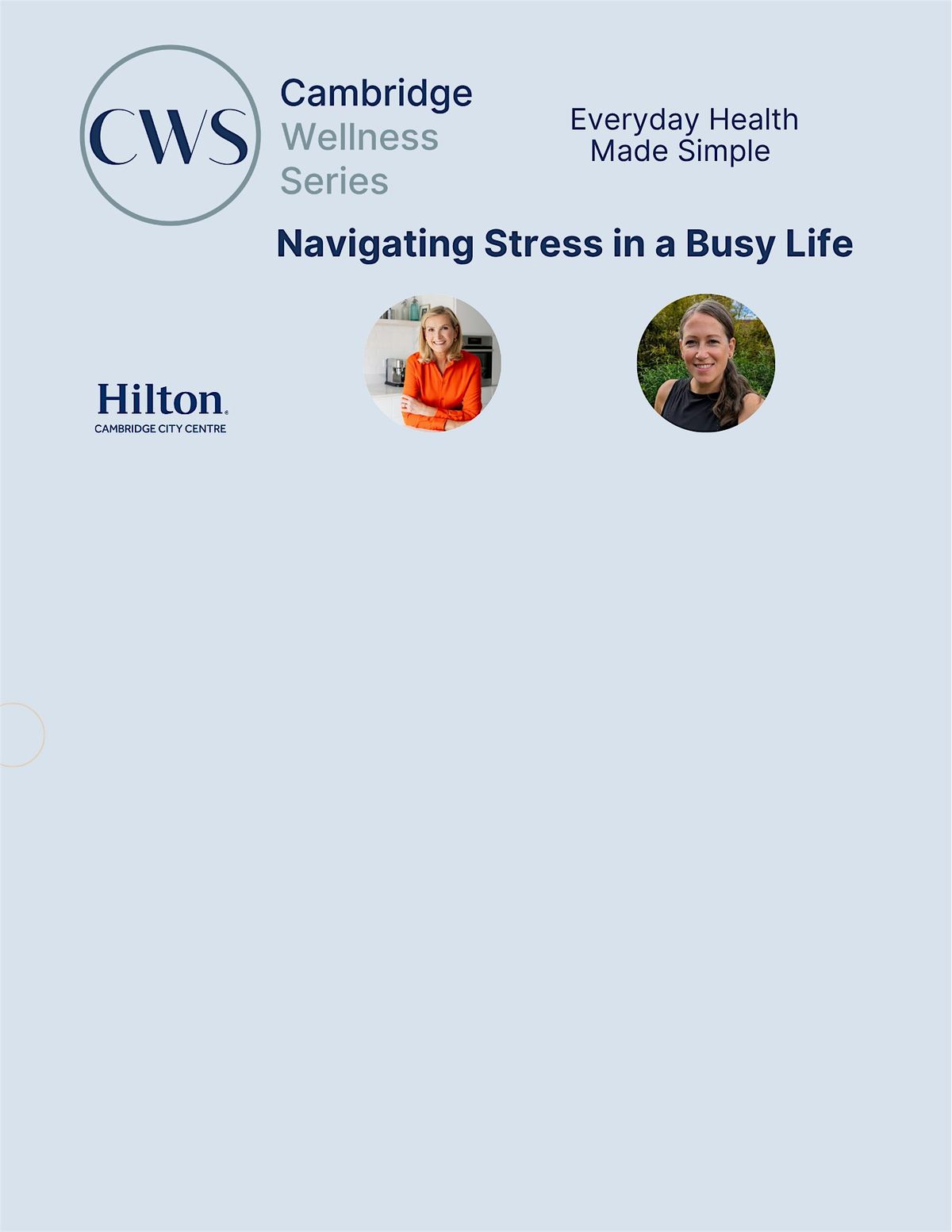 Following sell-out events in 2025, the Cambridge Wellness Series returns to focus on one of the most prevalent factors affecting health today: Stress.