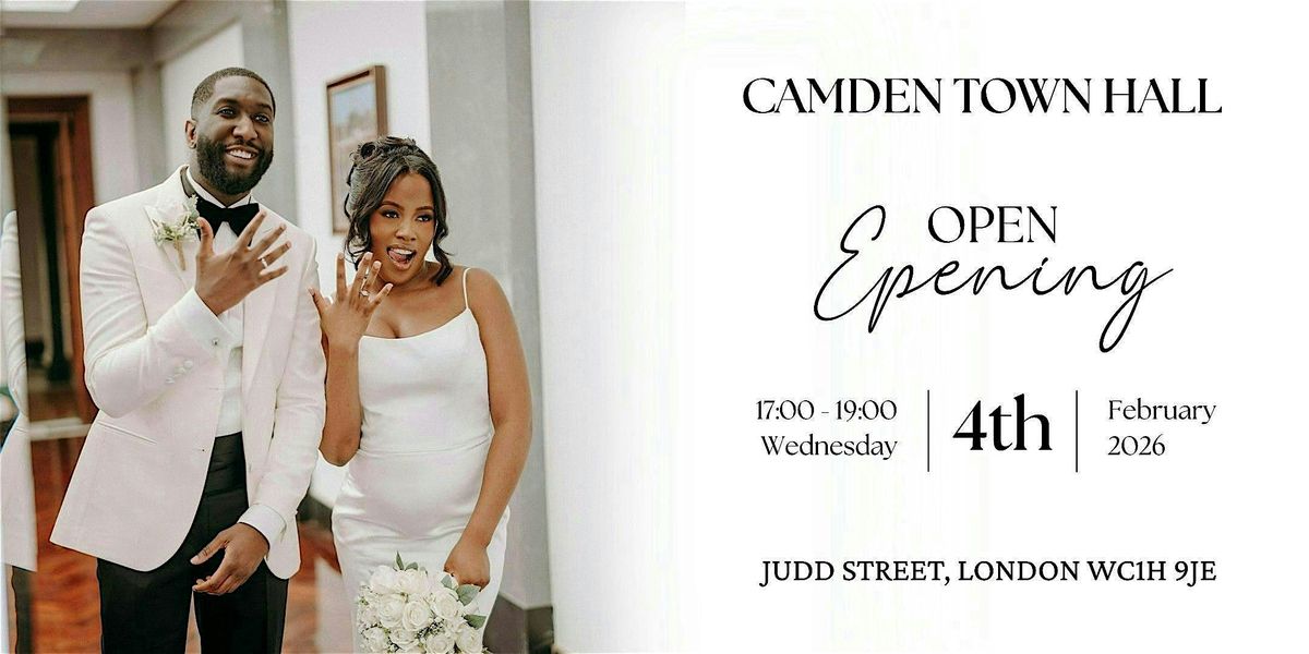 You're invited to an inspiring evening at Camden Town Hall on Wednesday, 4th February 2025 at 5:00 PM! This in-person event is the perfect opportunity to explore our beautiful venue and discover how it can bring your special ceremony to life.