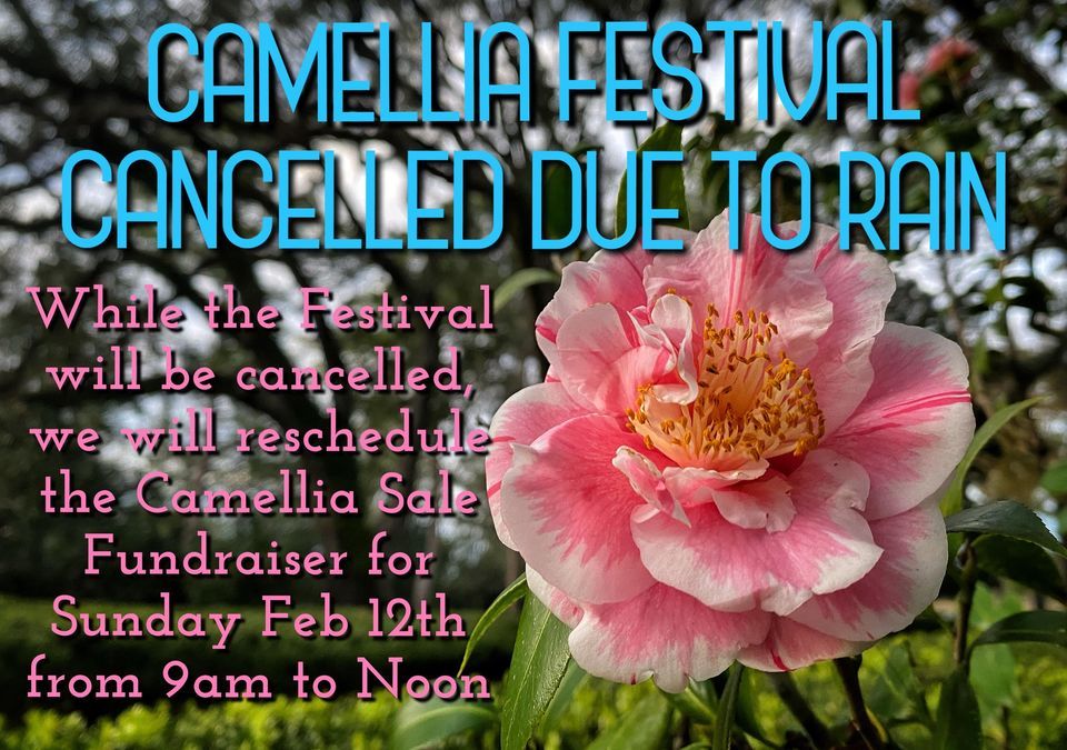 Unfortunately because of the rain forecast, we have had to make the difficult decision to cancel the camellia festival. We are planning to reschedule the Camellia Sale Fundraiser for Sunday Feb 12th from 9am to Noon. Camellias will be $30 each and Park entry fee is $4 per vehicle.