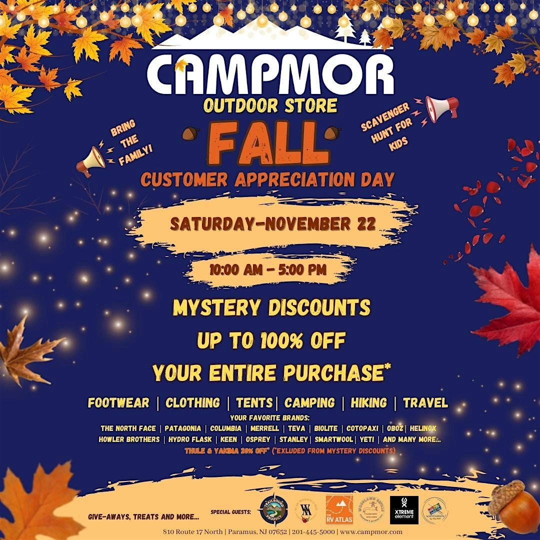 Campmor’s Fall Customer Appreciation Day returns on Saturday, November 22 at our Paramus, NJ retail store! This free, family-friendly event is our way of saying thank you to the outdoor community that has supported us since 1978.