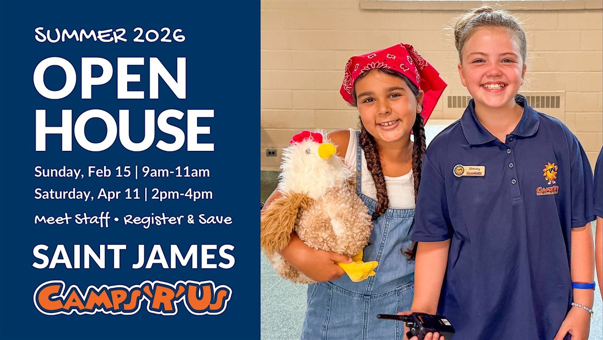 Join us Sunday, February 15 at 9:00 AM or Saturday, April 11 at 2:00 PM for a special opportunity to discover Camps 'R' Us Saint James, Long Island's most affordable ACA-accredited private day camp. Whether you're returning or brand new to our camp community, this is your chance to see where your child's summer memories will be made.