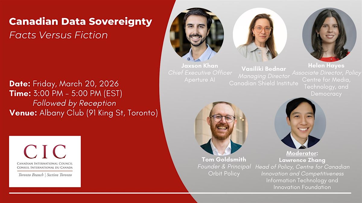 The Canadian International Council’s Toronto Branch is delighted to invite you to a panel for a timely and highly important discussion on Canada’s data sovereignty.