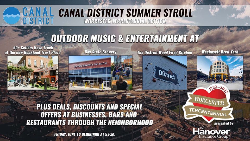 Kick off the Worcester Tercentennial Anniversary Weekend at the Canal District Summer Stroll followed by a public fireworks display at Polar Park.Outdoor music and entertainment at: