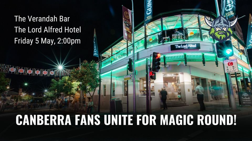 Canberra Raiders fans, Magic round is coming and The Lord Alfred, the iconic Brisbane hotel, is the place to be prior to the Raiders v Bulldogs match. On the corner of Caxton Street and Petrie Terrace, it is a very short walk to Lang Park. This is our favourite pub in Queensland... and we've had some great fan meet ups there in the past. The Verandah Bar, upstairs is reserved for Raiders fans. Spend the afternoon looking down Caxton Street to the Stadium, before heading down to the ground.Place: The Verandah Bar, The Lord Alfred Hotel