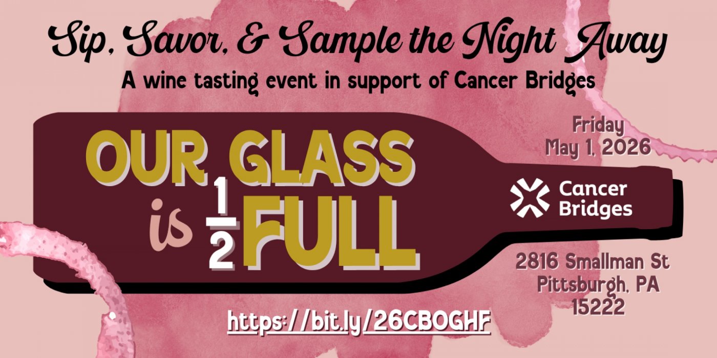 Cancer Bridges’ Our Glass is Half Full is an evening of wine, community, and purpose in support of individuals and families impacted by cancer. Hosted in the heart of the Strip District, this special tasting event brings neighbors together to raise critical funds for Cancer Bridges’ free emotional, social, and wellness programs—ensuring no one has to face cancer alone. Join us on May 1, 2026, in lifting a glass to hope, resilience, and the power of community.