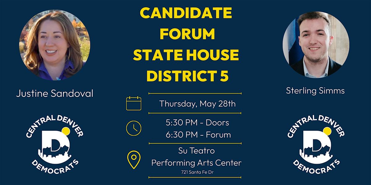 The Central Denver Democrats of House District 5 invite you to hear from the candidates who want to represent you in the State House. Join us as Justine Sandoval and Sterling Simms as they share their vision for Denver and Colorado.