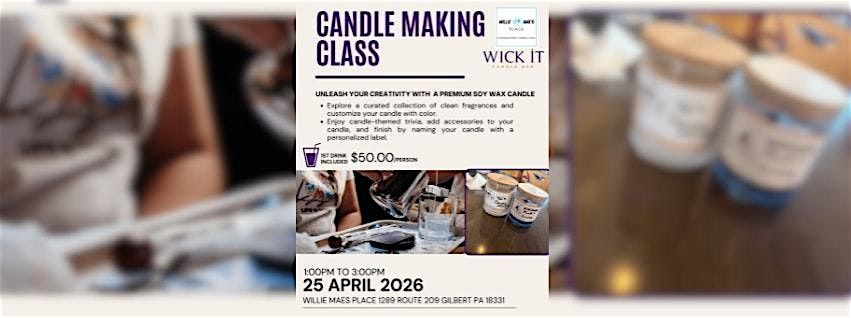 Candle-making class with Willie Mae’s Place & Wick It! Create a soy candle, choose scents/colors, add a label. $50 pp(1st drink included)About this Event