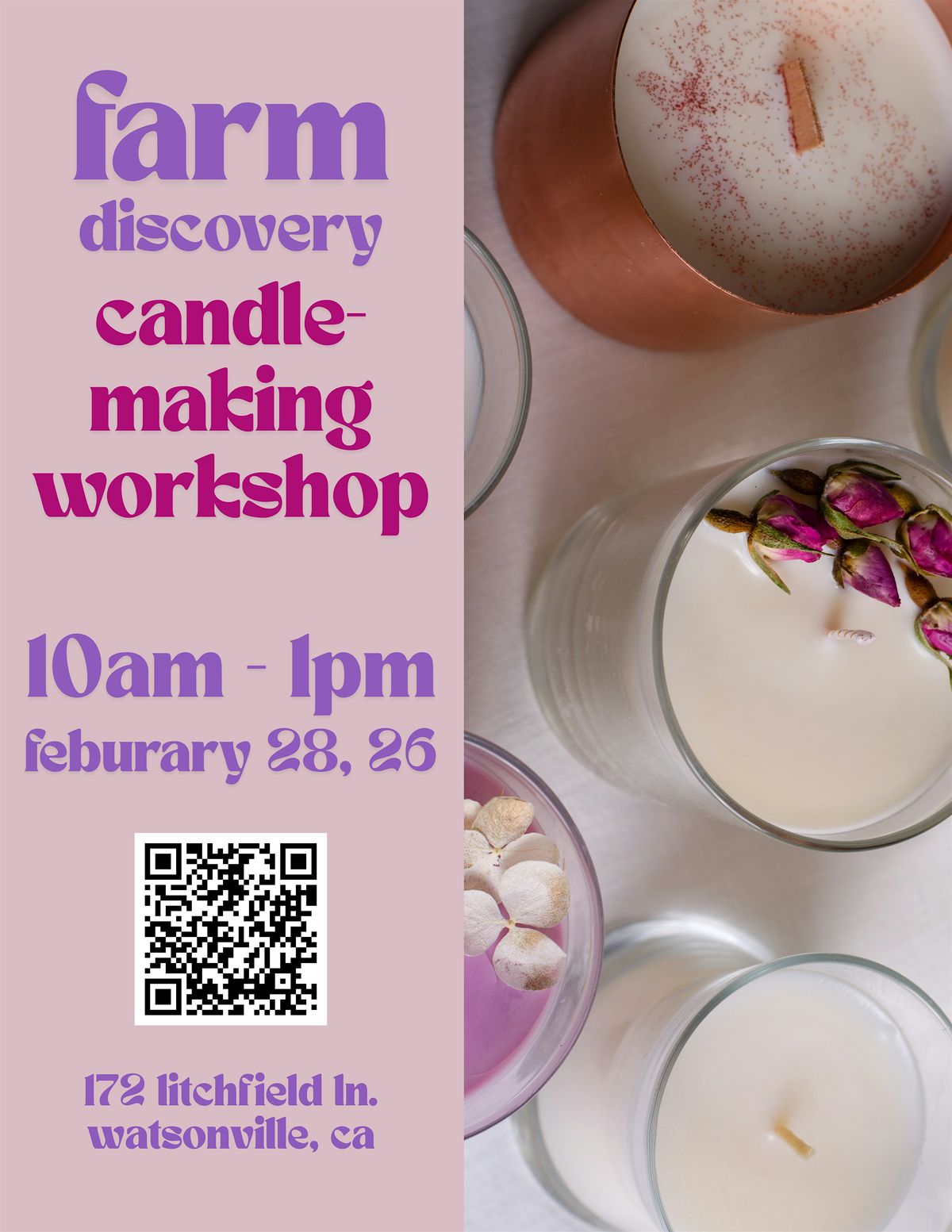 This hands-on candle-making workshop introduces participants to the basics of crafting simple, functional candles using ethically and sustainably sourced materials from the farm. Participants will explore natural scents, including essential oils, and learn safe pouring techniques, scent blending, and best practices for use and care. Each person will leave with a finished candle and the skills to continue making candles at home.