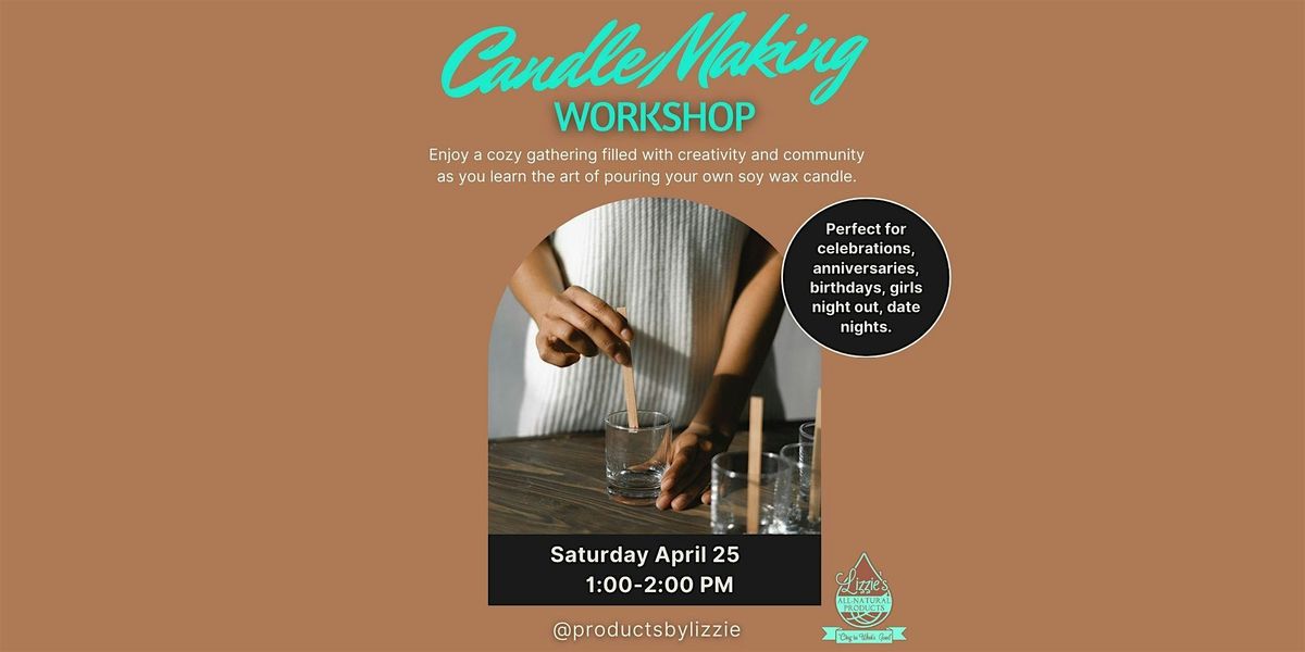 Join us for a fun, relaxing, and hands-on candle making experience hosted by Lizzie’s All Natural Products. This one-hour workshop is perfect for beginners and creatives alike. You will learn how to safely make your own soy wax candle while enjoying a welcoming and judgment-free environment.