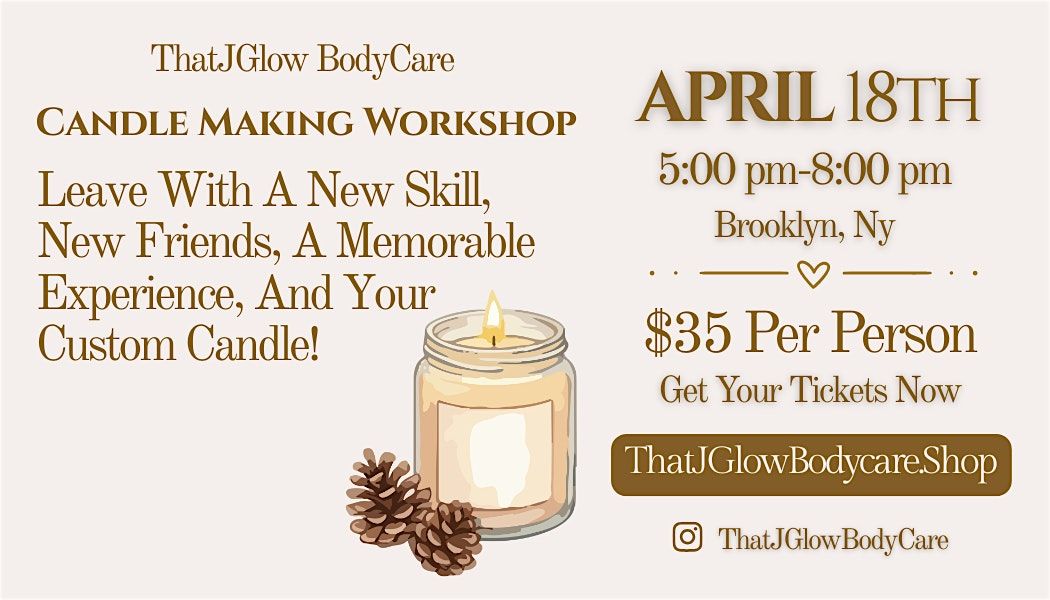 ThatJGlow Bodycare Workshops are guided experiences that spark creativity and foster community. You'll learn the art of candle making while connecting with others in a warm and inviting atmosphere. Perfect for beginners and enthusiasts alike, it's a chance to craft something beautiful together.