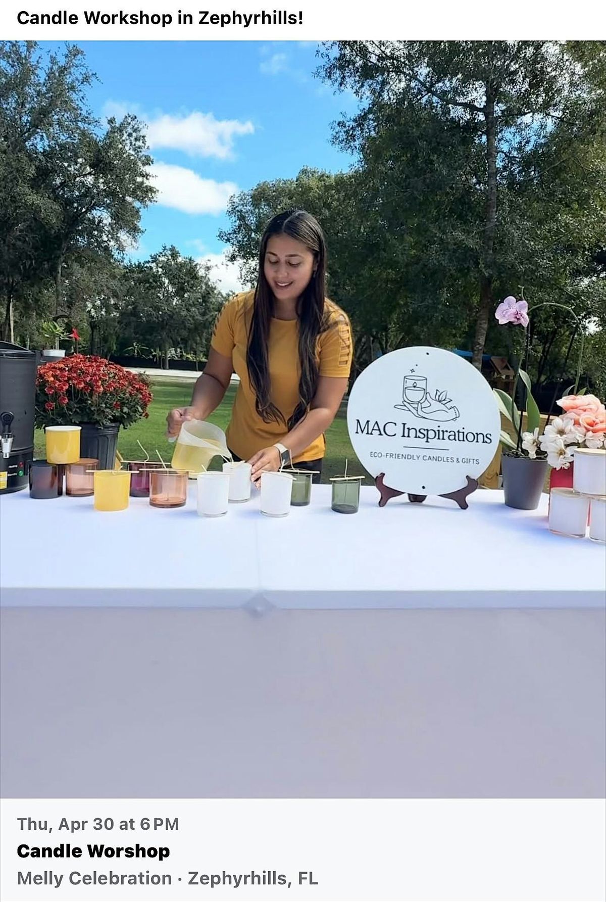 Come join us for a fun in-person Candle Workshop where you'll learn how to make your very own beautiful candles! It’s a chill atmosphere perfect for beginners and pros alike. You'll get hands-on experience mixing scents and colors to create unique candles that you can take home. Don’t miss out on this cozy experience – it's a great way to relax, get creative, and maybe even pick up a new hobby!