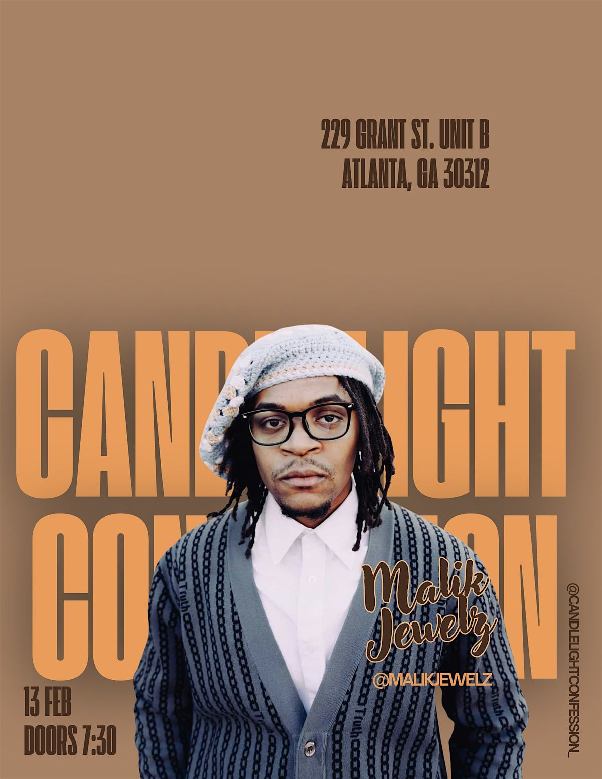 Get ready for an unforgettable night at Candlelight Confessions featuring the incredible Malik Jewelz! Join us in person for some soulful vibes, intimate tunes, and a cozy atmosphere filled with candlelight magic. This is your chance to experience heartfelt music up close – bring your crew and let's make memories together!