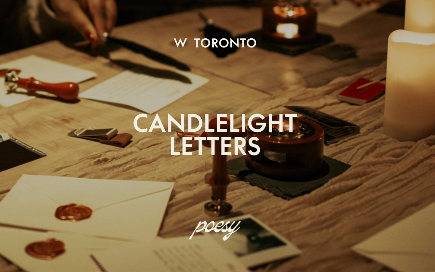 Enter Candlelight Letters by Poesy, a two‑hour, candlelit experience designed for those who celebrate connection through expression. Guests are welcomed with a glass of prosecco before the space is transformed by hundreds of candles, creating a warm, cinematic atmosphere where guests write by quill, choose from curated stationery, and seal their words with wax. Guests will enjoy a selection of artisanal cheeses and delicate pastries, complemented by live entertainment.