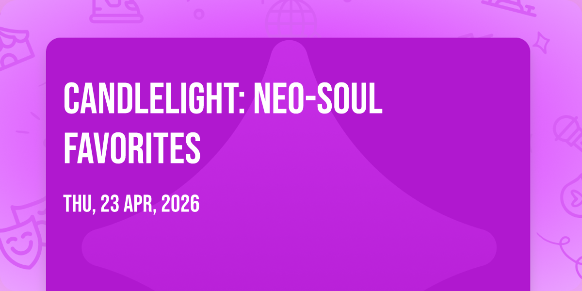📍 Location: 29.9668, -90.0549🌟 Step into a world of wonder at Candlelight: Neo-Soul Favorites, where extraordinary moments await! 🏛️ Located at Hotel Peter and Paul in dynamic New Orleans, LA, this event will become the talk of the town. 📅 Join us on April 23rd, 2026 at 11:00 PM for a celebration that defies the ordinary. ✨ This curated experience brings together the best of entertainment, culture, and community spirit. Every detail has been thoughtfully planned to ensure an unforgettable experience for all our guests. 🎯 Take advantage of this opportunity to be part of something special. 🎊 Early registration is recommended as space is limited!