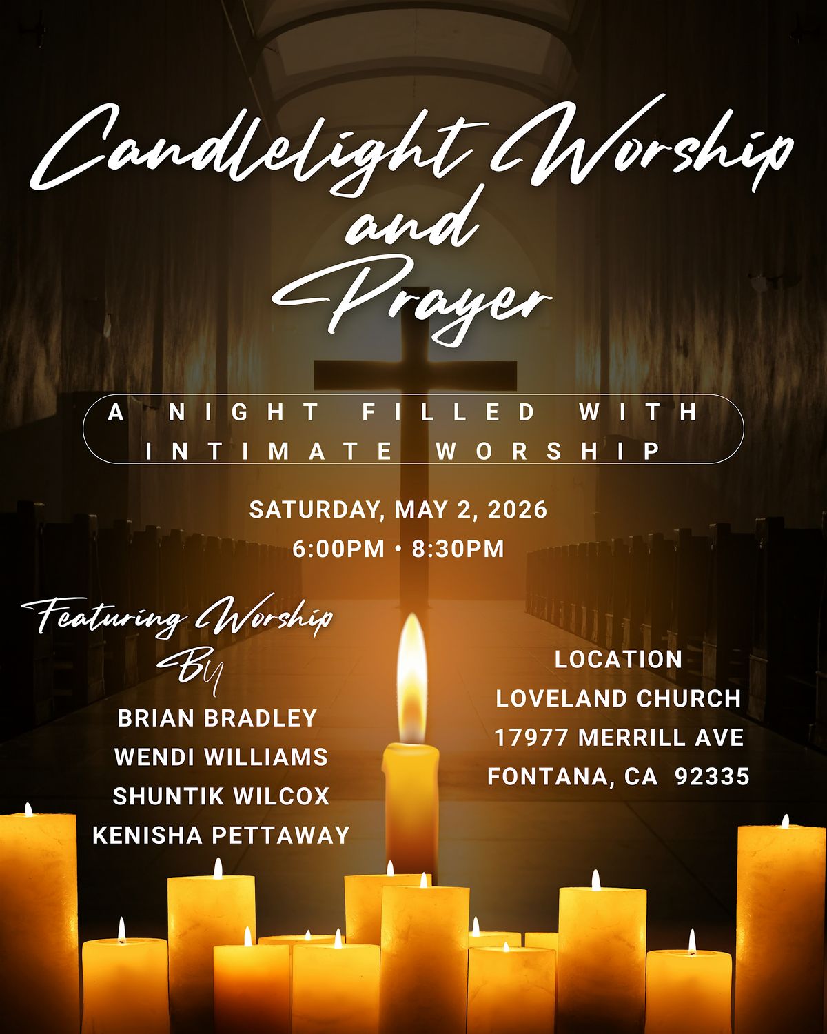 This special gathering will be filled with heartfelt worship, prayer, and moments of reflection surrounded by candlelight. Whether you are looking for encouragement, spiritual renewal, or simply a quiet place to connect with God, this night is for you.