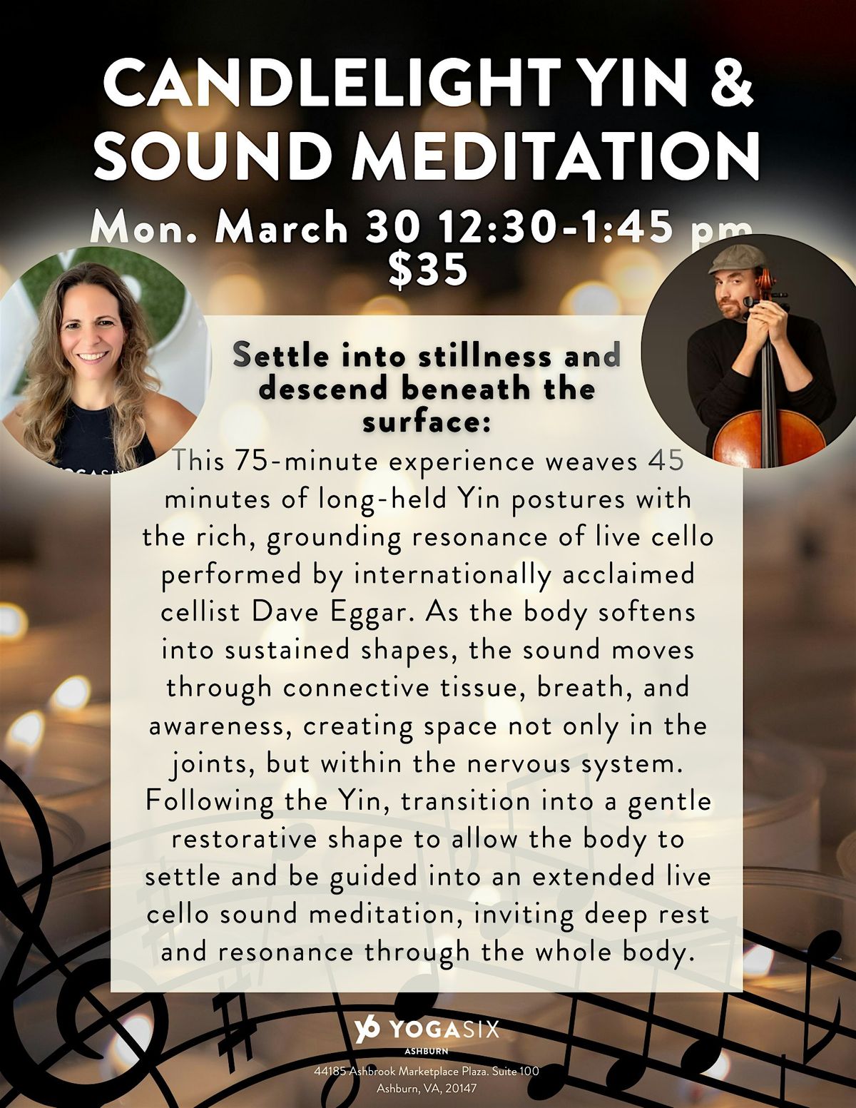 This 75-minute experience weaves 45 minutes of long-held Yin postures with the rich, grounding resonance of live cello performed by internationally acclaimed cellist Dave Eggar. As the body softens into sustained shapes, the sound moves through connective tissue, breath, and awareness, creating space not only in the joints, but within the nervous system. Following the Yin, transition into a gentle restorative shape to allow the body to settle and be guided into an extended live cello sound meditation, inviting deep rest and resonance through the whole body.
