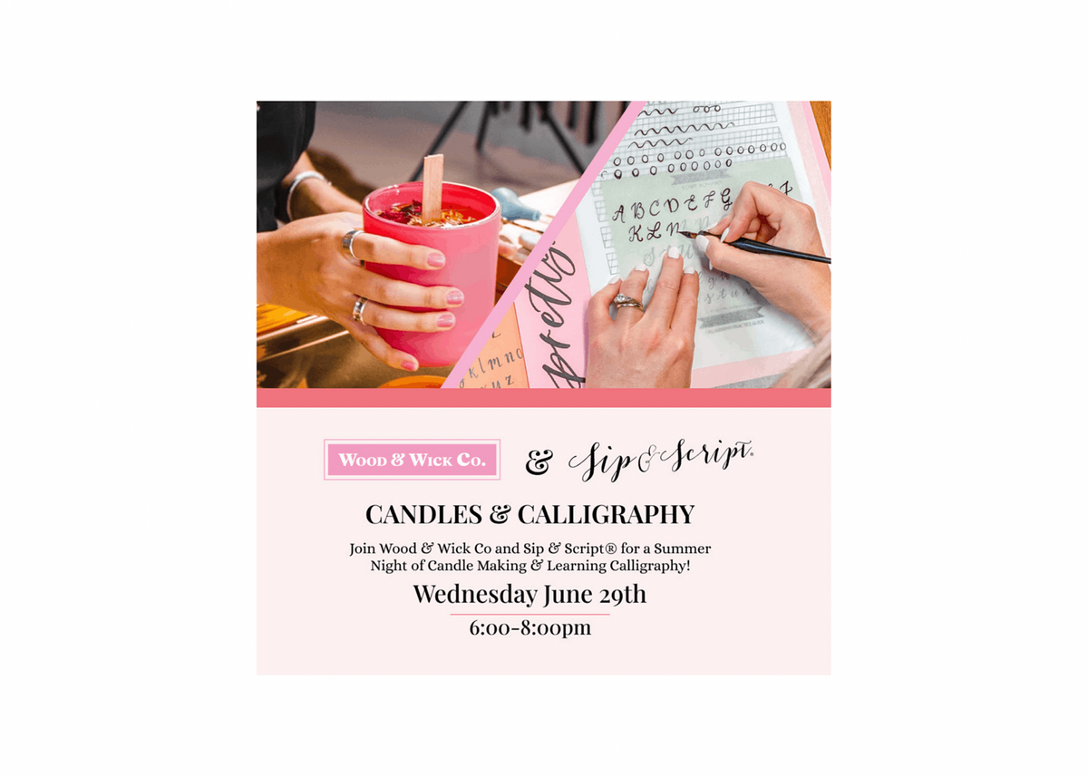 Join us at Wood & Wick Co in Fort Lauderdale, FL for a night of making your own candles and pretty lettering! Whether you’re a stationery nerd, DIY Bride-to-be, or just a crafty individual, in this workshop you’ll be learning an introduction to modern calligraphy with a pointed dip pen and ink. We will cover all the basics and get you ready to add those special lettered details to your snail mail, wedding paper goods, home decor, and more! You will also learn to pour your own candle with your own unique scent! The perfect crafty night out!