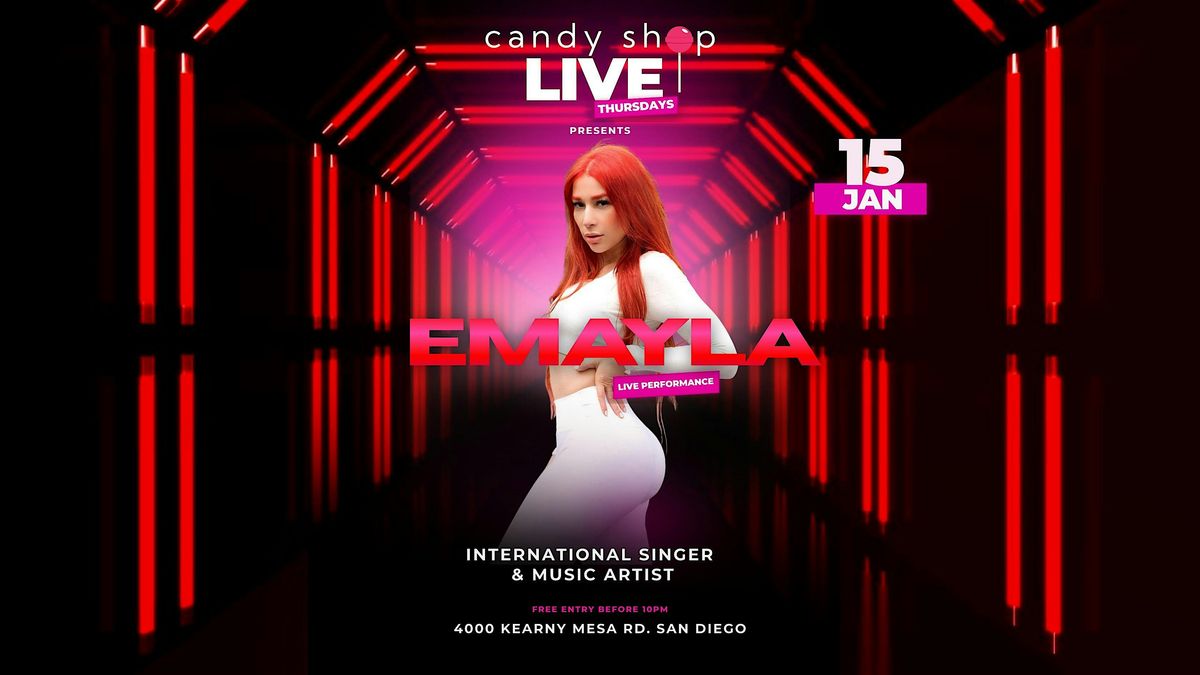 Join us at Candy Shop for Candy Shop Live Thursdays featuring Emayla, Italian-born, LA-based singer, songwriter, and multi-instrumentalist, as seen on Univision, MTV, Telemundo & CNN Español, handpicked by Juanes for a Grammy-winning MTV Unplugged duet. She performs pop and soul with international flair.