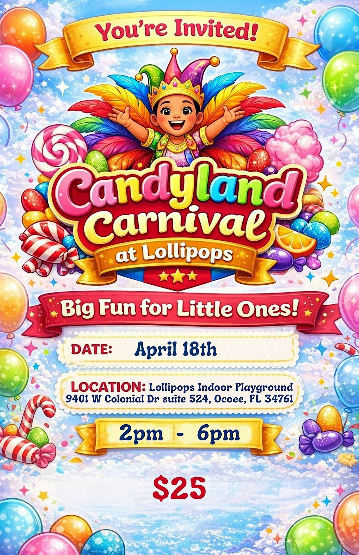 Get ready for a magical indoor carnival experience where candy colors, music, and imagination come together! Candyland Carnival at Lollipops transforms Lollipops’ indoor mall space into a playful parade-style celebration designed just for kids and families.