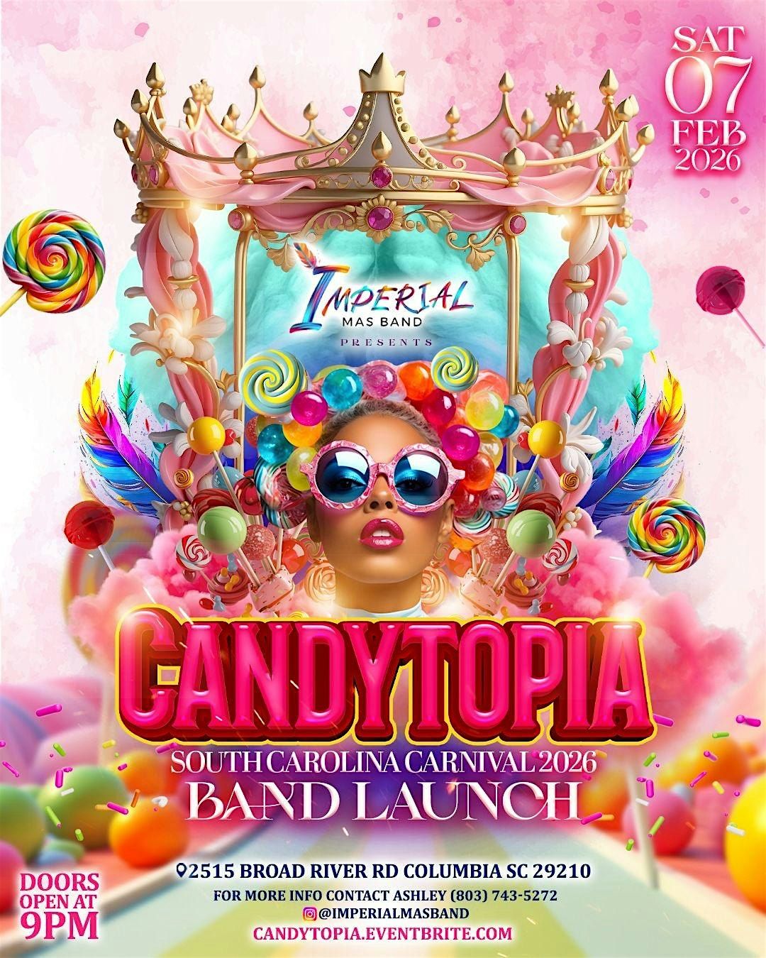 Get ready for a sweet, high-energy band launch experience as Imperial Mas Band brings CANDYTOPIA to life for South Carolina Carnival 2026. Expect vibrant colors, candy-coated vibes, Caribbean culture, and nonstop energy all night long.
