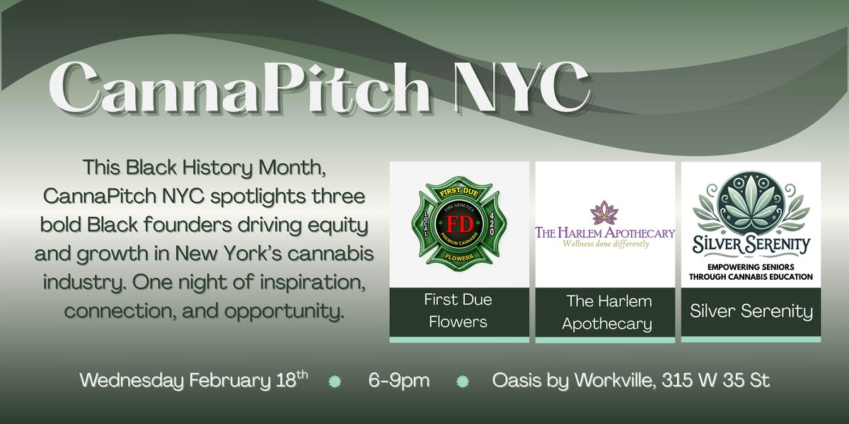 This Black History Month, CannaPitch NYC returns with a special edition spotlighting three visionary Black entrepreneurs redefining what leadership, innovation, and impact look like in New York’s growing cannabis industry. Join us for an evening of powerful stories, community connection, and inspiration as three dynamic founders share how they’re building brands that blend purpose, culture, and growth in the evolving cannabis space.