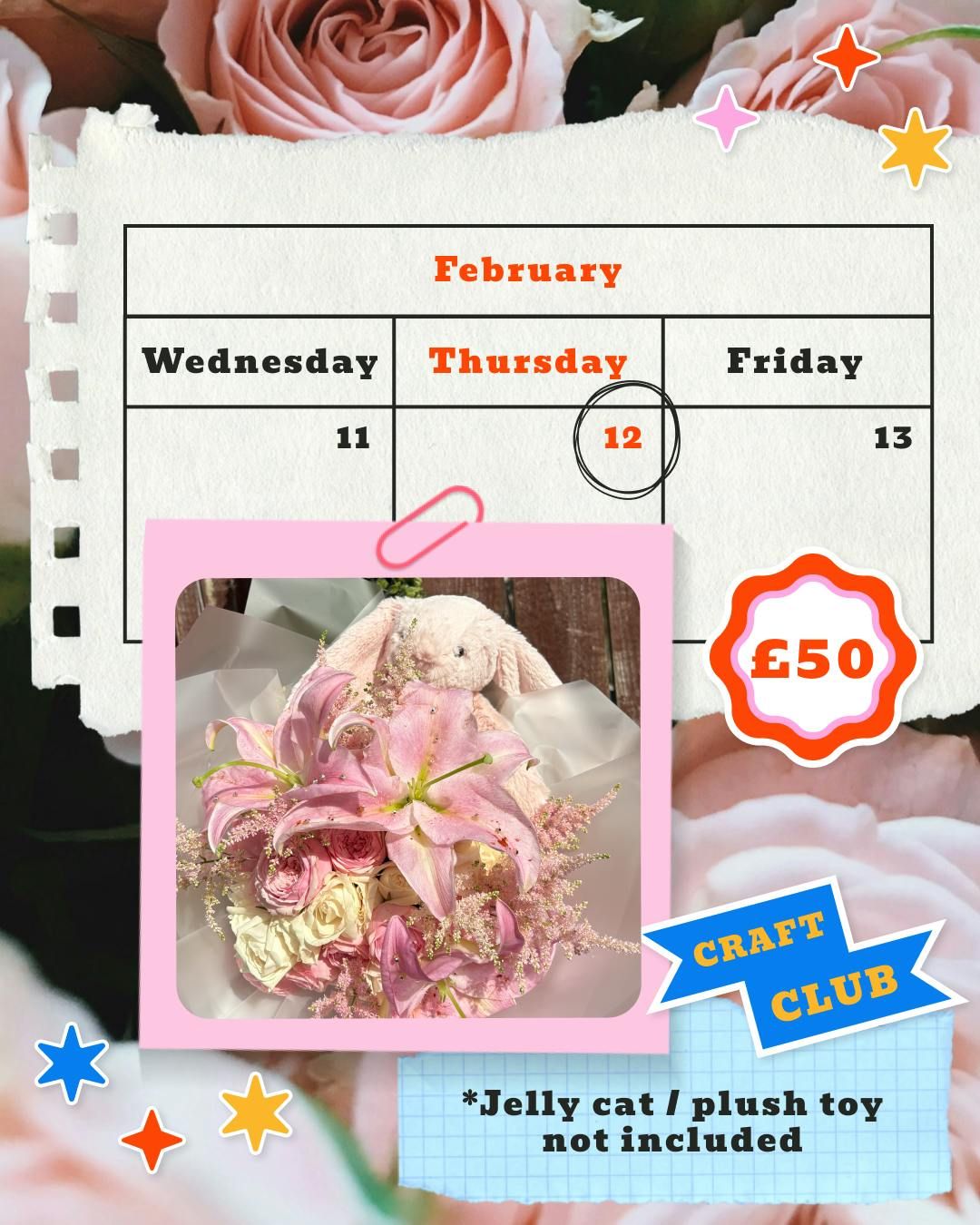 Happy Valentines or Galentines!Join us for a Canny Groovy evening of valentines fun at our Jellycat bouquet Making Workshop!