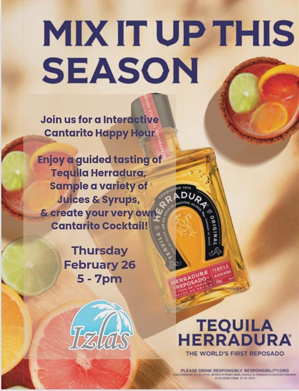 Join us at Izlas Latin Cuisine for an Interactive Cantarito Happy Hour featuring Tequila Herradura.