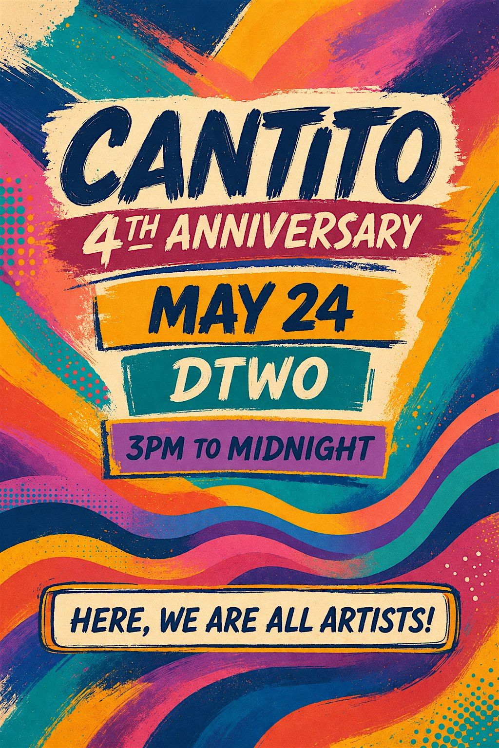 Get ready for a day full of creativity, connection, and pure vibes as we celebrate 4 years of Cantito a celebration of art, community, and unforgettable moments. Hereโs what awaits you: