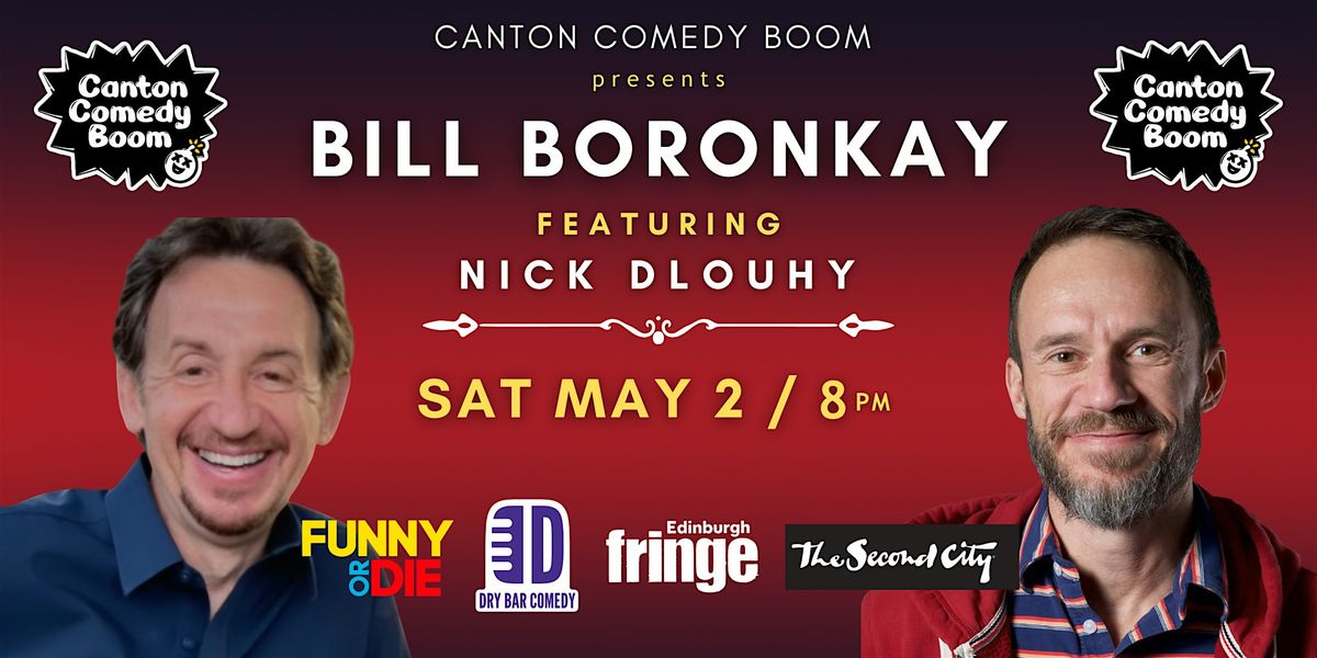 Join Canton Comedy Boom on Saturday, May 2nd for a night of clean stand-up comedy with headliner, Bill Boronkay and feature, Nick Dlouhy!