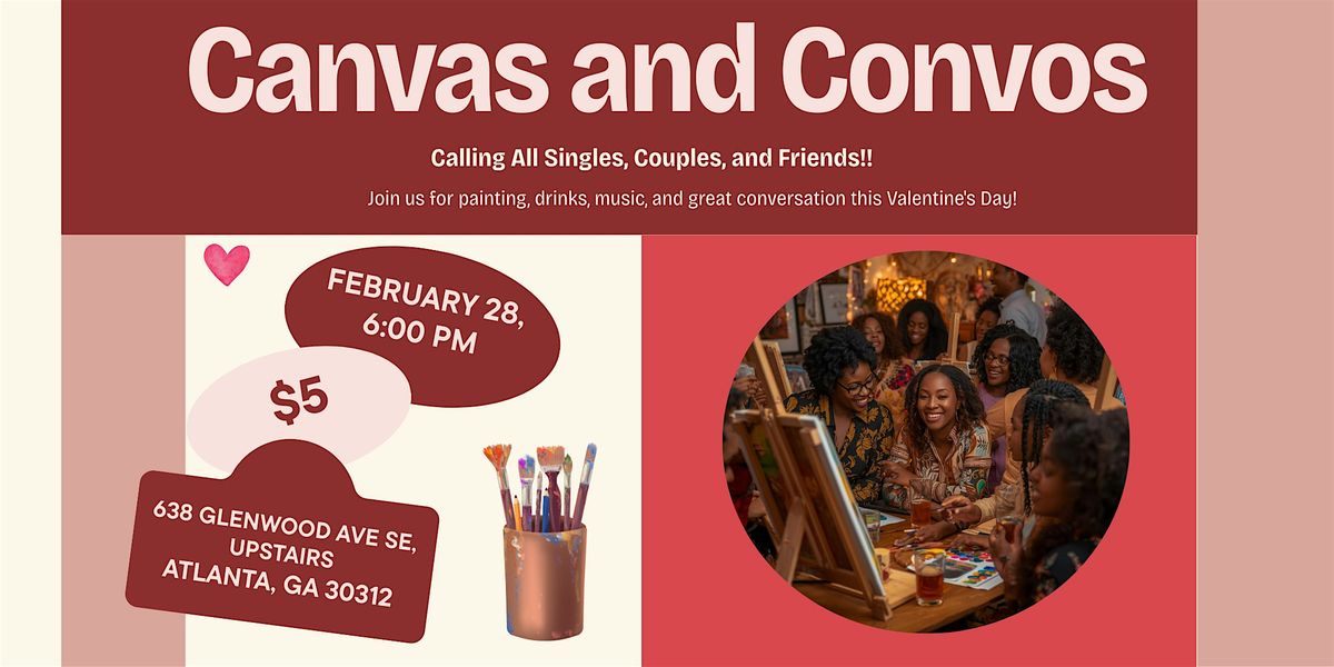 Looking for a chill and creative night out after Valentine's Day? Whether you're single, boo'd up, or just kicking it with friends, Canvas & Convos is the perfect spot to relax, paint, and connect!