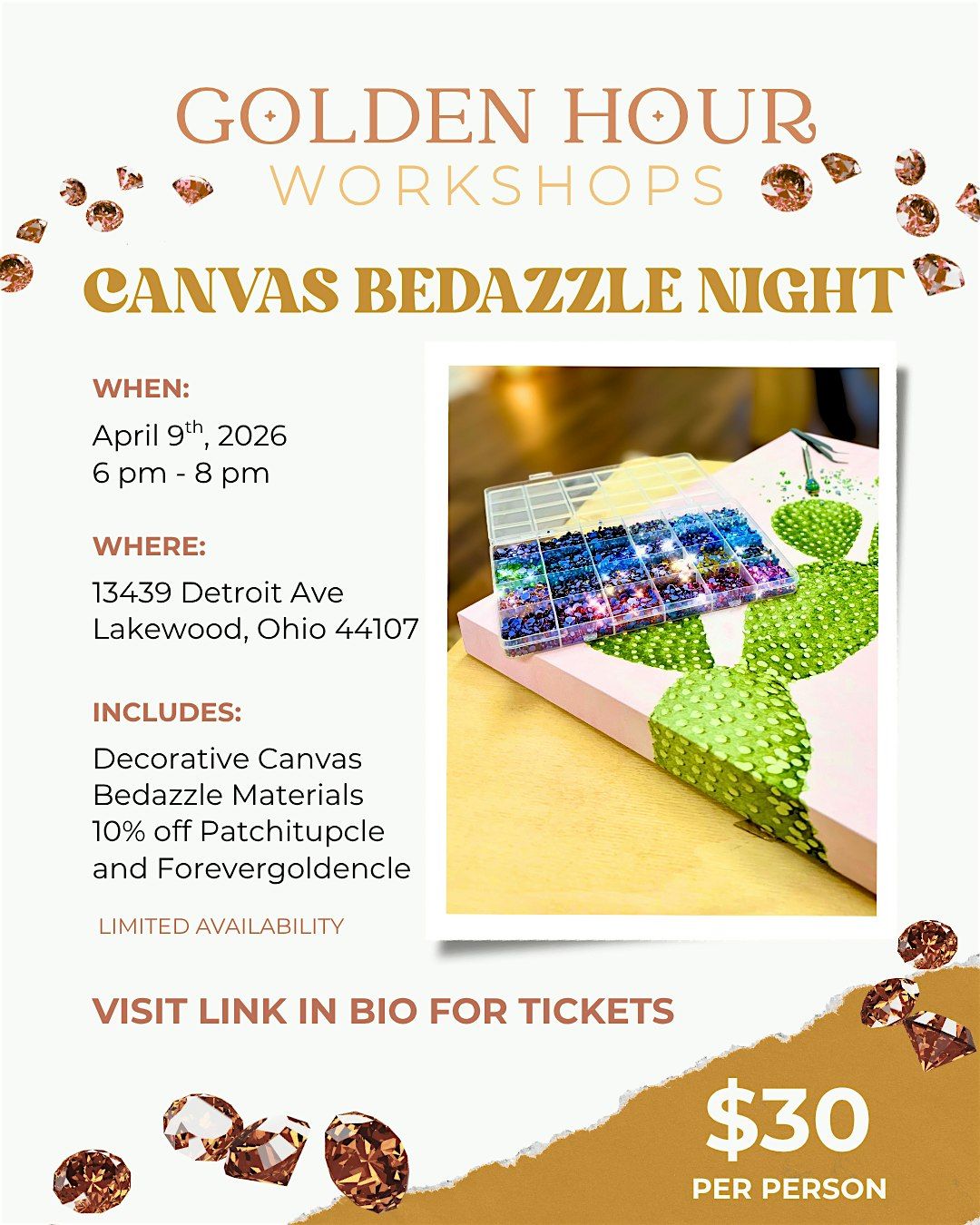 Join us for a fun and creative evening at Canvas Bedazzle Night! Bedazzel your own decorative canvas using a variety of sparkling bedazzle materials. Whether you're coming with friends or solo, this hands-on experience is perfect for anyone looking to unwind and get creative.