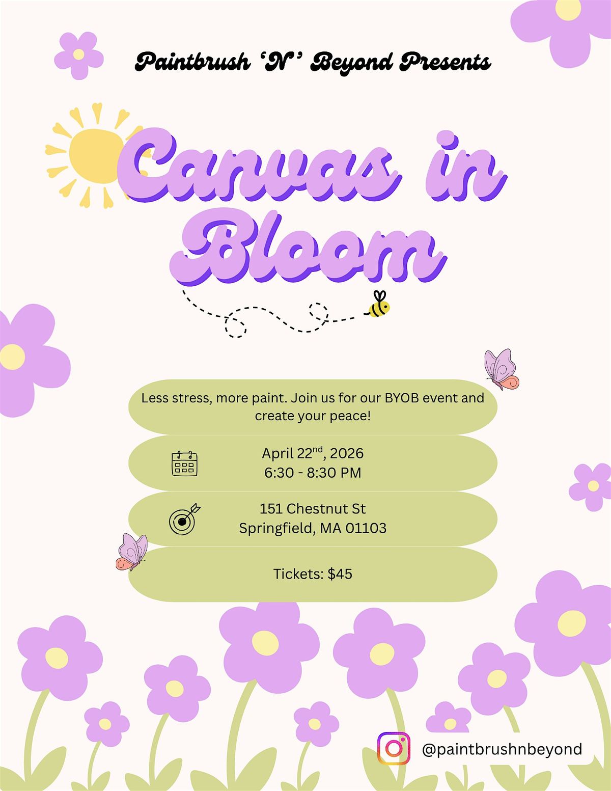 Join us at Overland Lofts in Springfield, MA, for a fun and relaxed evening! Take this time to unwind, whether you're a pro or just trying painting for the first time. This event is perfect to let your imagination run wild and do what feels right. Swing by on April 22, 2026, at 6:30 PM. Bring your friends, enjoy some good vibes, and let's make some beautiful art together.
