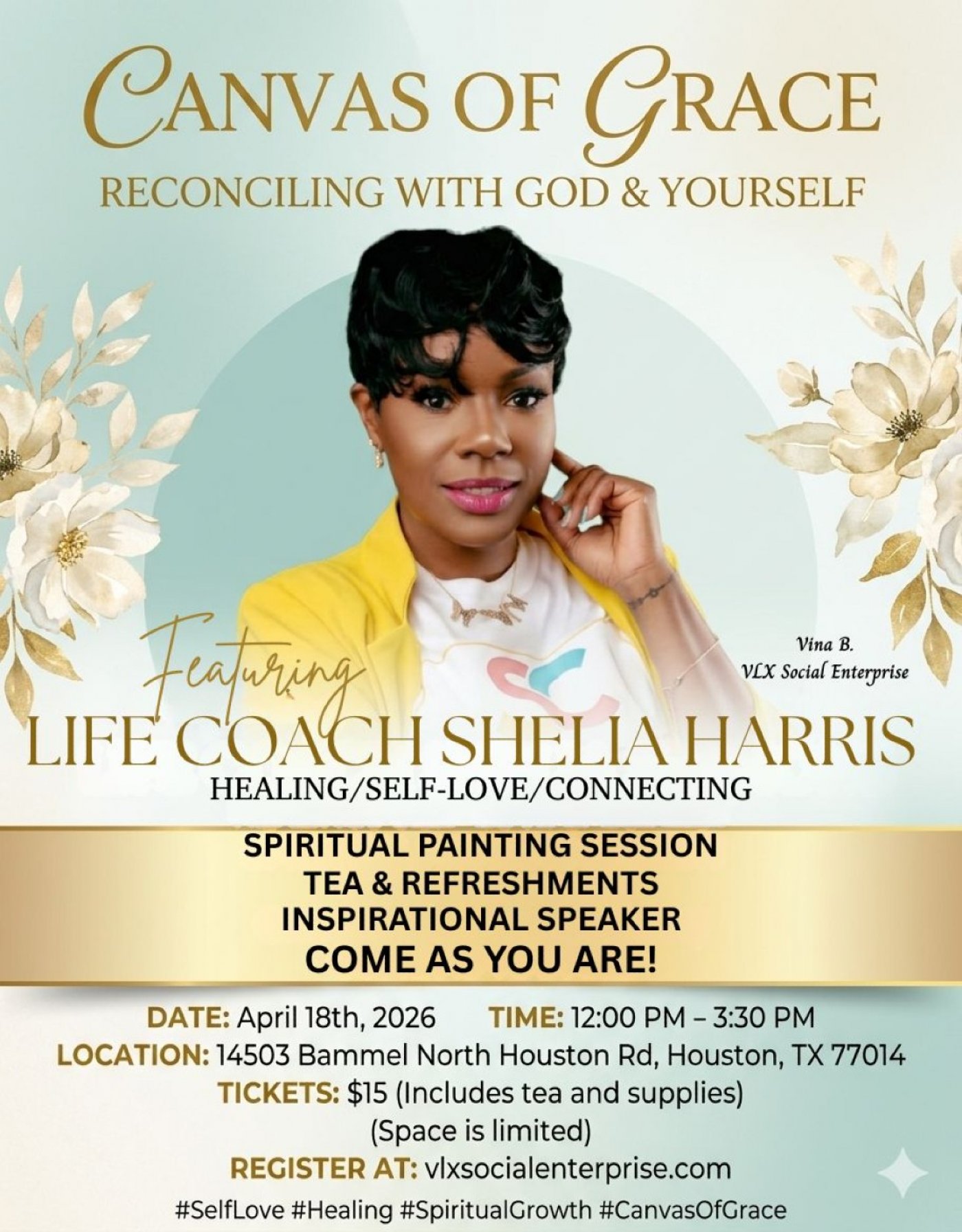 Join VLX Social Enterprise for an intimate afternoon designed to help you quiet the noise and reconnect with your Creator and your true self. Canvas of Grace is not just an event; it is a safe sanctuary for the woman ready to trade her "old labels" for a "New Creation" identity.
