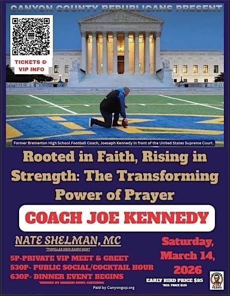 Join us in person for an exciting event with Coach Joe Kennedy at the Canyon County Lincoln Days celebration! It's a great chance to connect, learn, and have fun together. Don’t miss out on this awesome community gathering full of energy and good vibes. See you there!