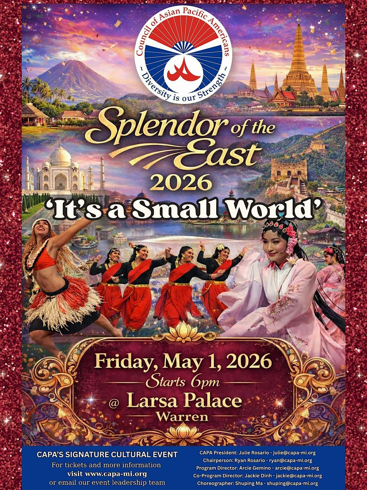 Join us in person for an unforgettable experience at CAPA Splendor of the East 2026. Dive into vibrant culture, amazing people, and stunning moments that celebrate the best of the East. This event promises good vibes, great connections, and memories you'll cherish forever. Don't miss out on the fun and excitement!