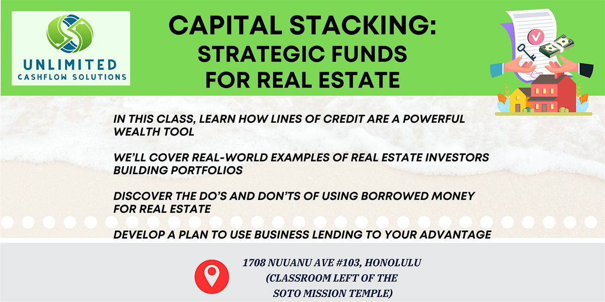 In-Person: Capital Stacking: Strategic Funds for Real Estate Sat 4/11/26 10am. Approximately 1.5 hours for training and Q&A.