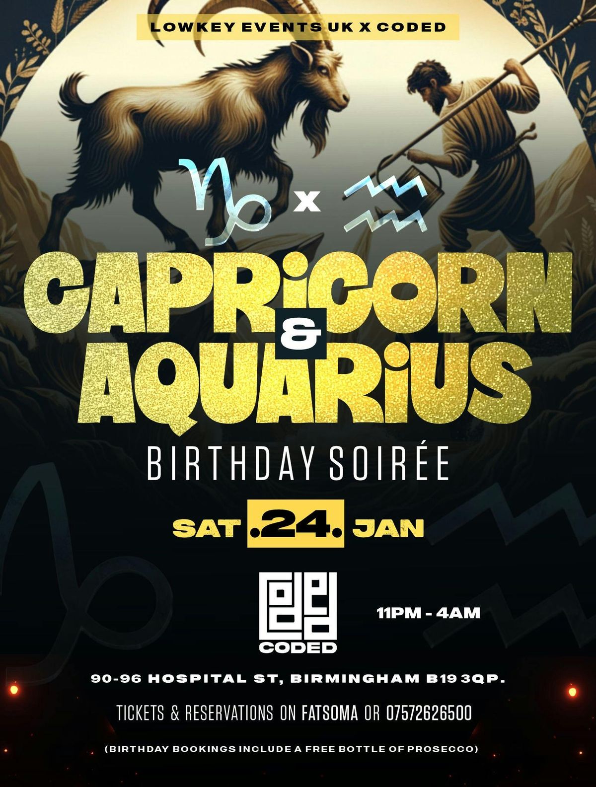 ♑️♒️ Capricorn x Aquarius Birthday Soirée ✨Two signs. One night. Pure energy.