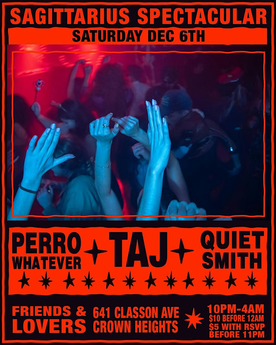 Sat., Jan. 3rd get ready for our glorious birthday bash because we're serving and swerving it up for Sagittarius season at FnL as special guests Perro Whatever and Quiet Smith join resident dj in lighting things up with heavy hitting heat and pristine vibes all night long. Expect Global Rhythms, Soulful House, Disco, New York City classics and more!