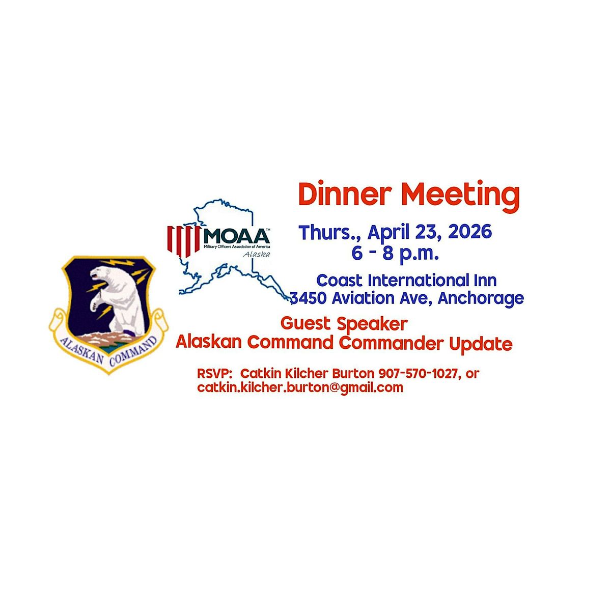 An ALCOM Commander will be our guest speaker updating our members on Alaska and national missions and goals.