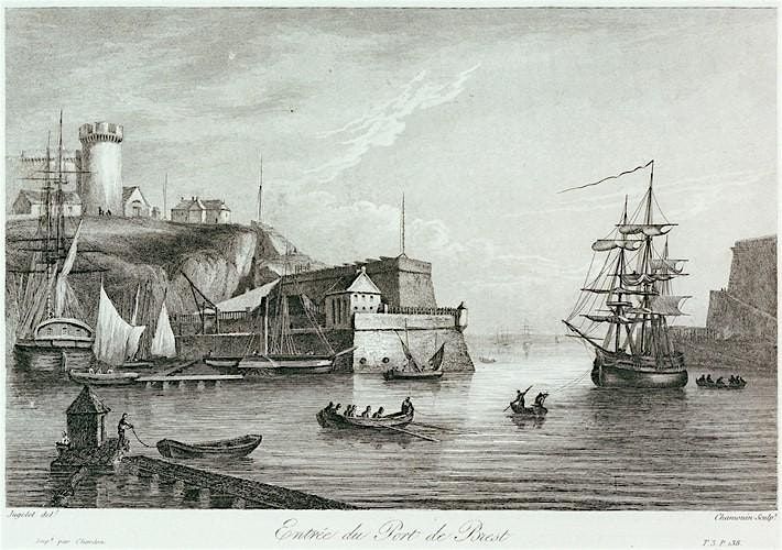 Four days into their voyage, however, their ship was captured by a French frigate. For the next four months they were held prisoner in Brest harbour, being moved from ship to ship every few weeks. They were eventually rescued by an American ship's captain who took them to France. Passing as Americans, they spent six months travelling through revolutionary France before finally leaving for America.