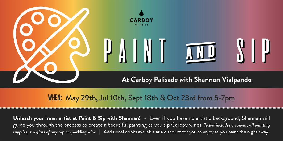 Grab a glass, pick up a paintbrush, and let the creativity flow! Join us at Carboy Winery – Palisade for a fun and relaxed Paint & Sip Class led by local artist Shannon Vialpadano.