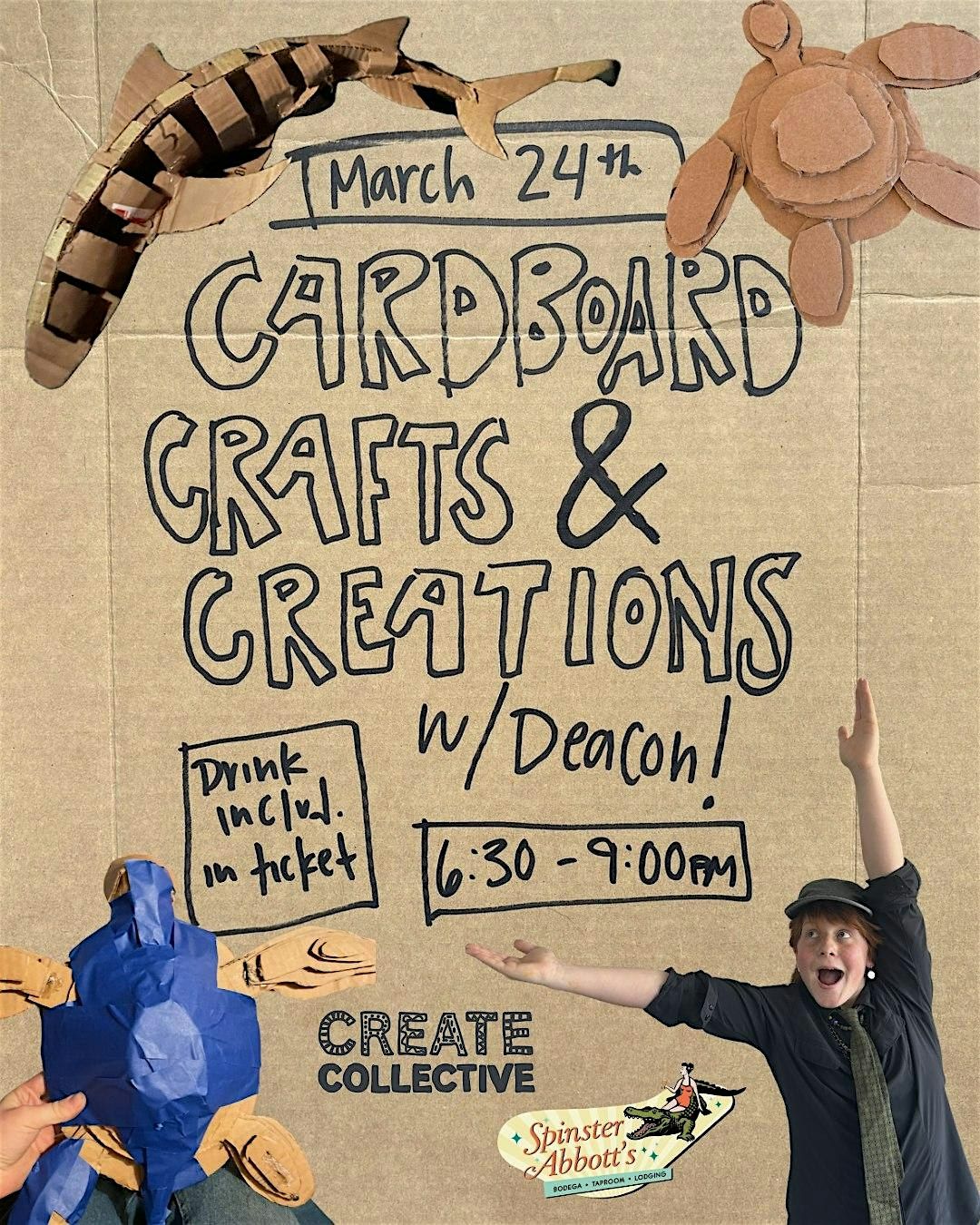 All materials will be provided, including recycled cardboard from Spinsters, giving new life to materials that would otherwise go to waste.
