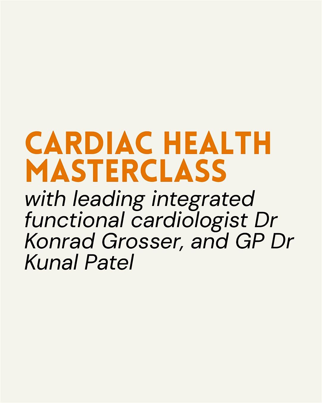 Join us on 27th May for an evening with Integrated Functional Cardiologist Dr Konrad Grosser and GP Dr Kunal Patel for a Heart Health Masterclass. You’ll learn about key aspects of cardiac health, including blood pressure, cholesterol, and other factors that impact long-term heart wellbeing.