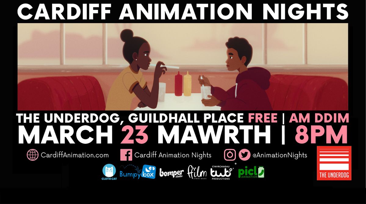 Ymunwch â ni ar gyfer rhifyn lansio Mini-CAF arbennig yng nghartref Nosweithiau Animeiddio Caerdydd, The Underdog yng Nghanol Dinas Caerdydd! Mynnwch ddarn o bizza a diod, cwrdd â chefnogwyr animeiddio eraill, cwrdd â gwneuthurwyr ffilm, cwrdd â ni! Yna setlo am awr o'r hyn sy’n dda.